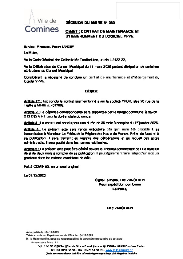 SOCIETE YPOK (01700 MIRIBEL) - Contrat de maintenance et d'hébergement du logiciel YPVE