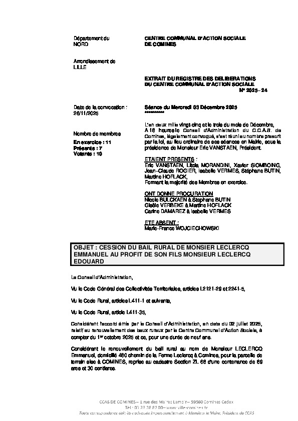 Cession du bail rural de Monsieur Leclercq Emmanuel au profit de son fils Monsieur Leclercq Edouard