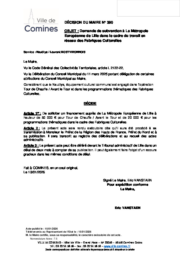 Demande de subvention à la Métropole Européenne de Lille dans le cadre du travail en réseau des Fabriques Culturelles