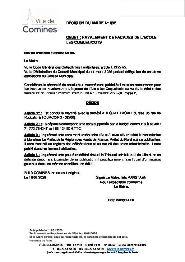 SOCIETE ADEQUAT FACADES (59200 TOURCOING) - Ravalement de façades de l'école Les Coquelicots