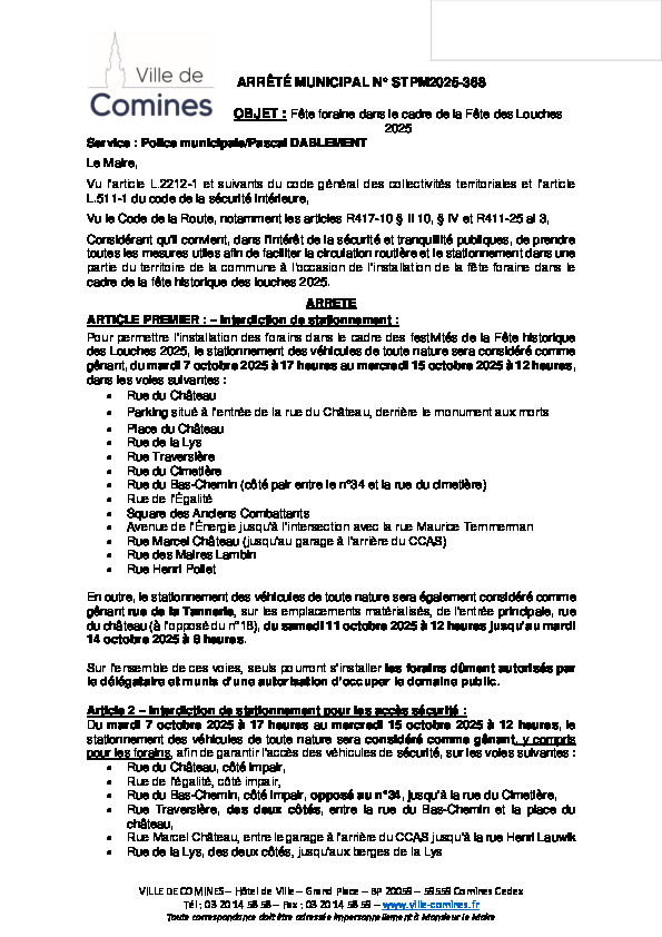 Fête des Louches 2025 - Installation des forains du 07 au 18/10/2025