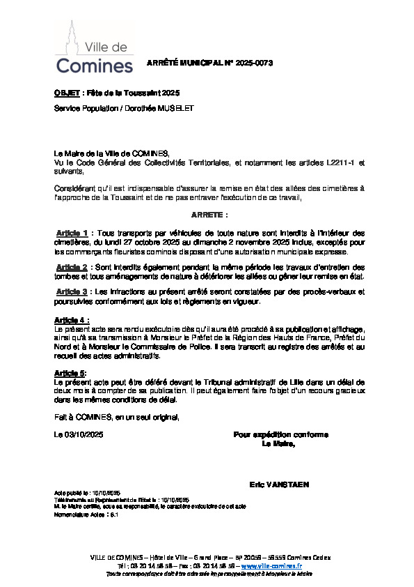 Fête de la toussaint - Remise en état des allées des cimetières du 27/10 au 02/11/2025