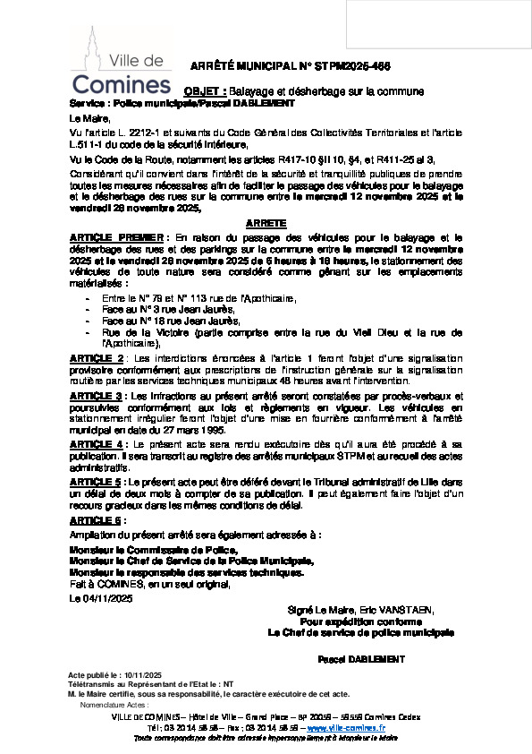Balayage et désherbage sur la commune - Réglementation de stationnement les 12 et 28/06/2025