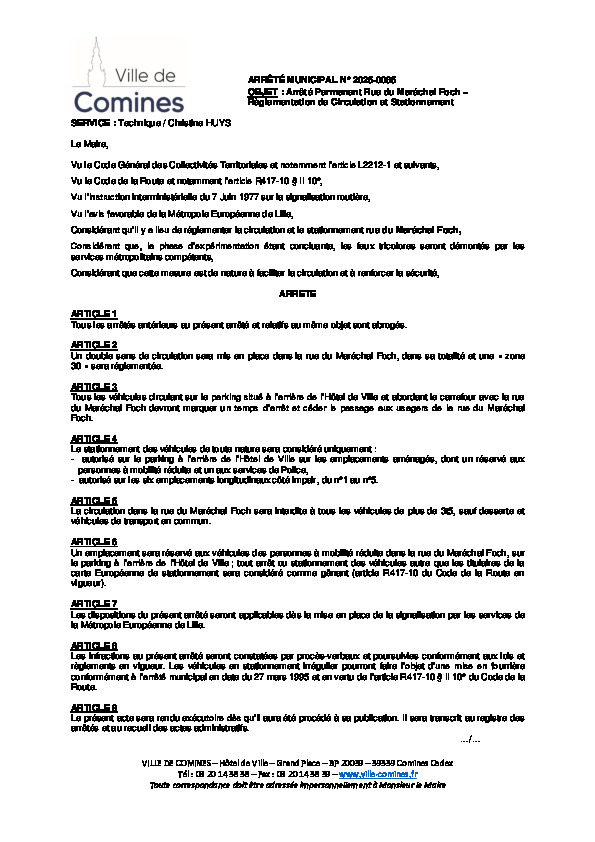 Règlementation de circulation et de stationnement rue du Maréchal Foch
