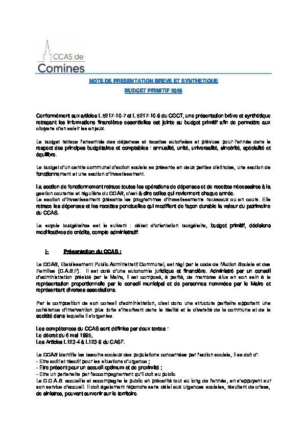 CCAS Note de présentation budget 2026