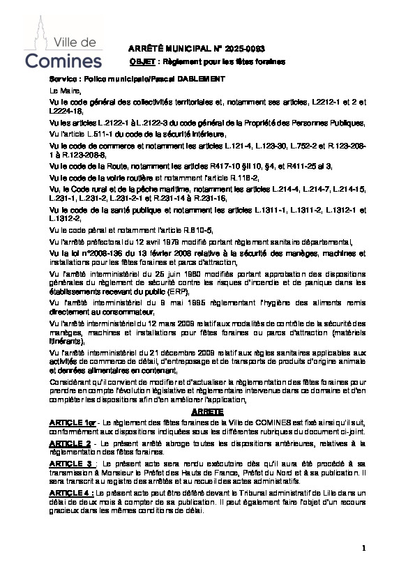 Règlement pour les fêtes foraines