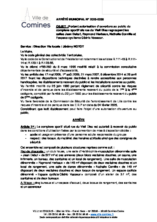 Ouverture d'un débit de boissons par le comité des fêtes de Ste Marguerite le 25/10/2025