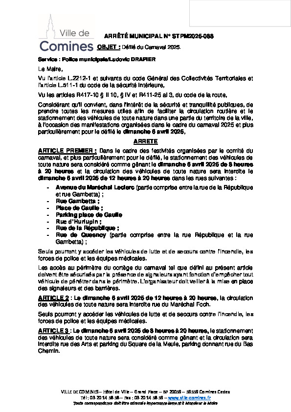 Marche des géants organisée par l'association Courir à Comines - Règlementation de circulation le 19/10/2025