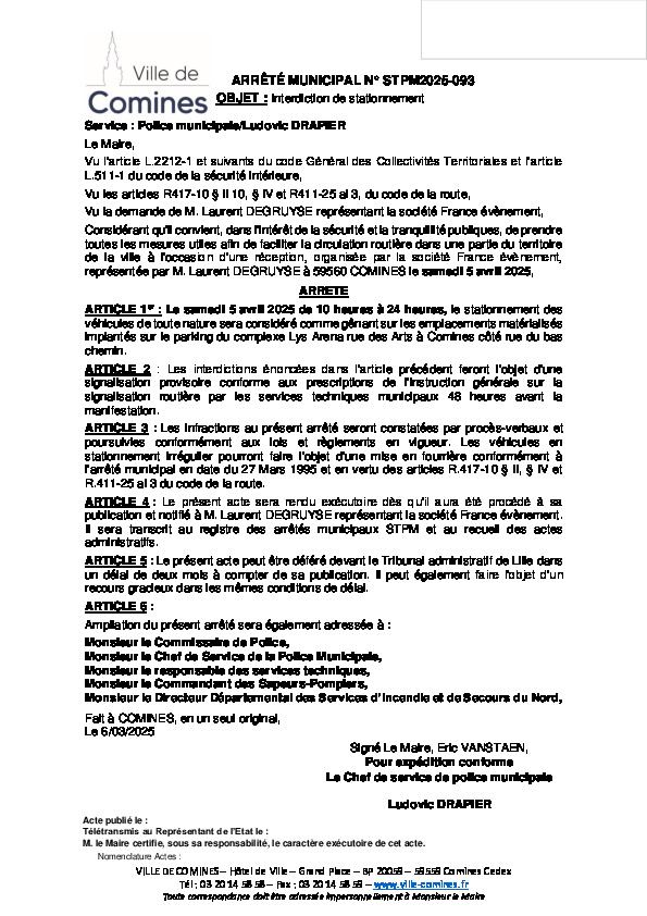 Fermeture provisoire de la voirie angles rue Maxence Van Der Meersch et rue Charles Legrand du 07 au 10/10/2025